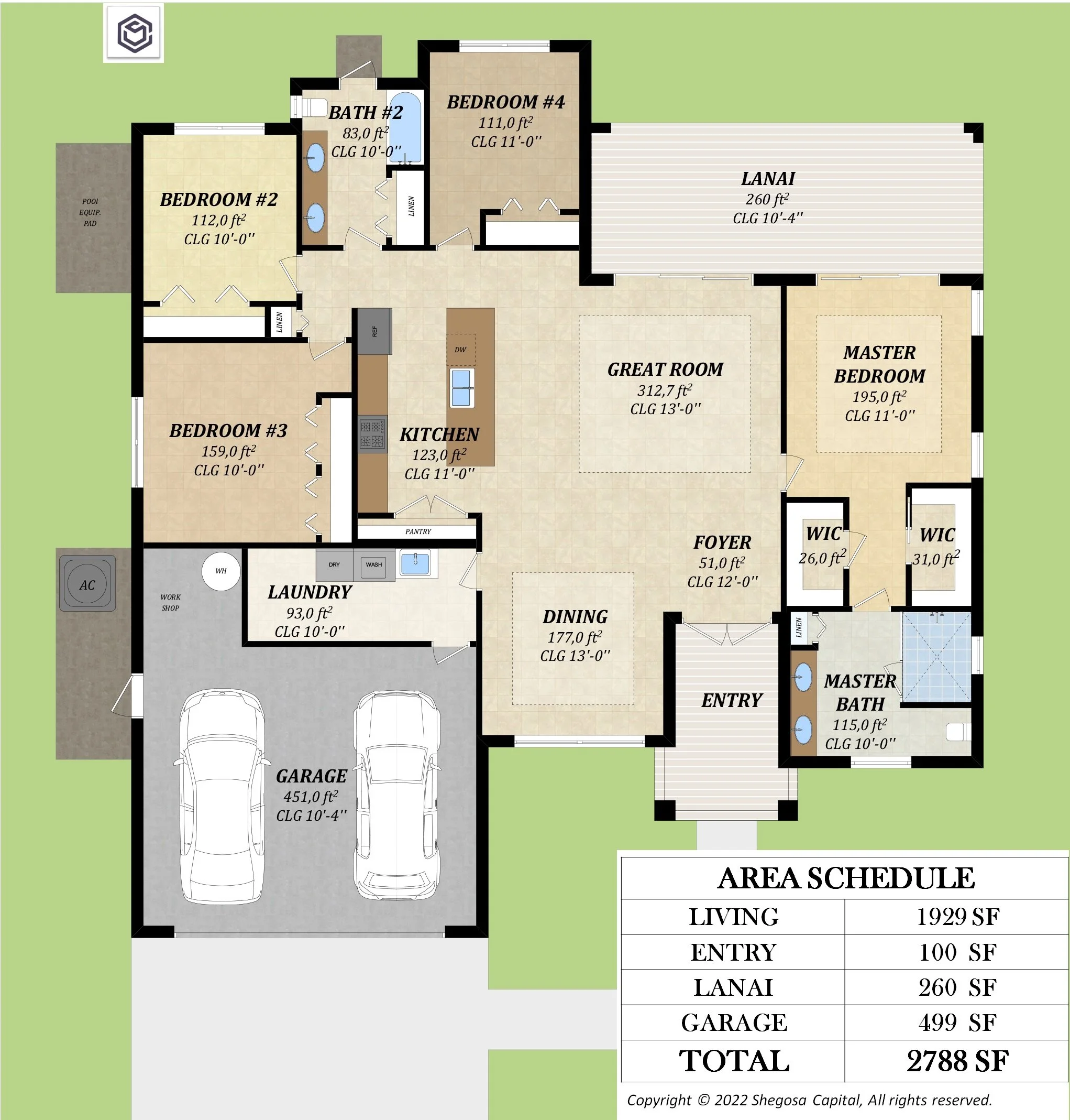 If you love the outdoors, you'll appreciate the ample space to add a pool, as well as the convenient lanai with 8 ft sliding glass doors. And when it's time to relax by the pool, the smart design includes a bathroom accessible from the exterior that can double as a pool bath.